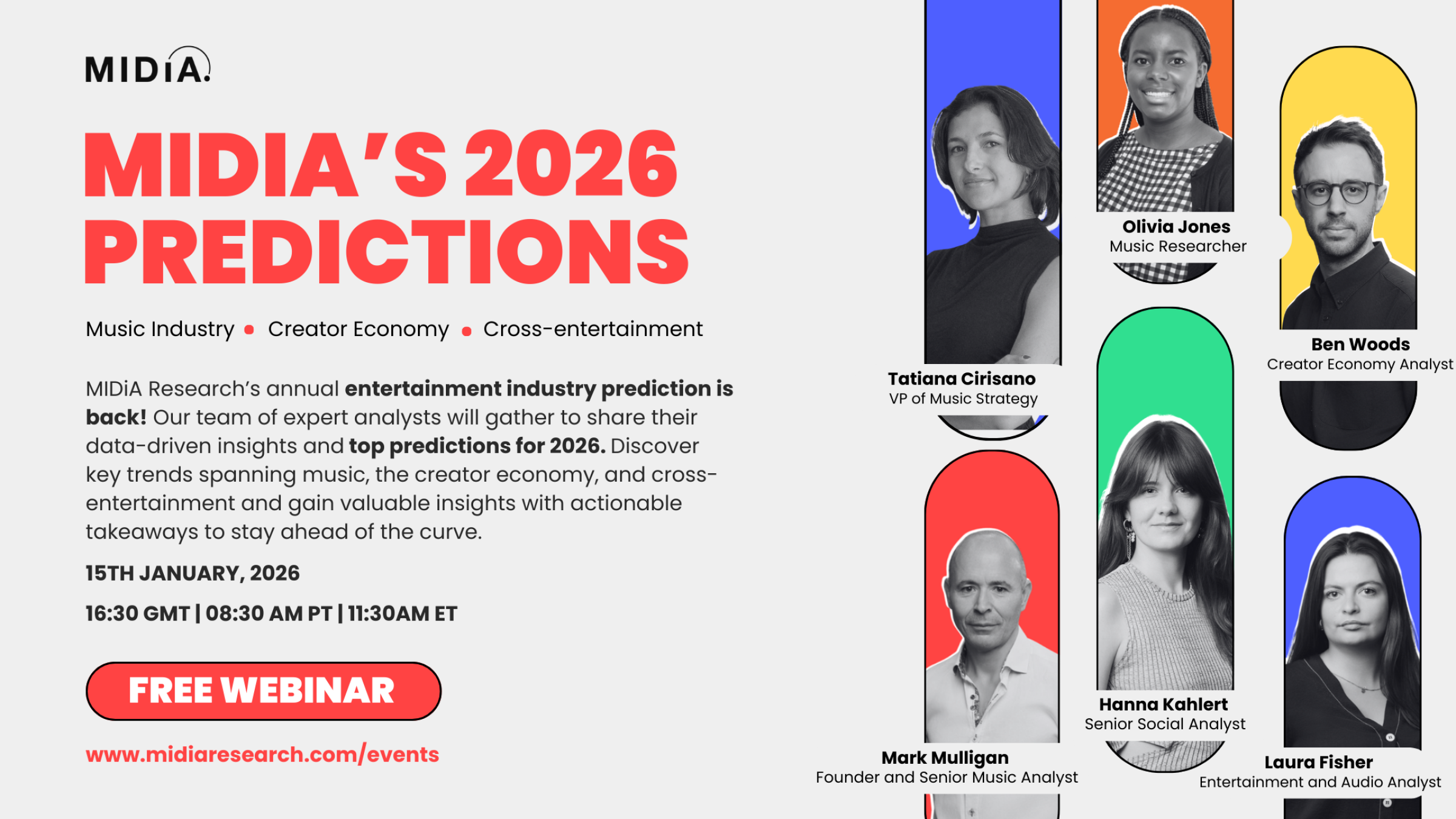 Why attend?MIDiA Research boasts a solid track record, with recent predictions achieving high success rates ( >80% success rate over the last half a decade). We provide reliable and stress-tested analysis to navigate the culture and business of entertainment.